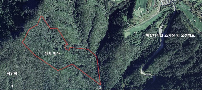 매각 홍천 임야가 위치한 곳은 비발디파크 스키장 및 오션월드에서 5분 거리이며, 서울 잠실에서는 약 1시간 10분 거리입니다.