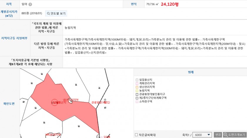 서울과의 접근성과 한해 400만명 이상이 방문하는 관광지 내의 임야가 평당 1만원에 나오기가 쉽지 않은 것 같습니다.