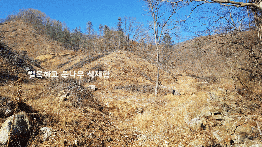 임야 소유주가 1년 전 전체 벌목한 뒤 채산성 있는 임업으로 옻나무를 전체 식재하였습니다.