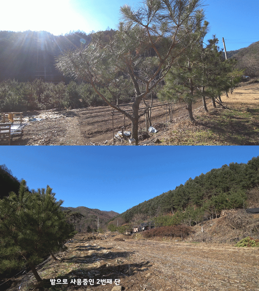 토지는 전체가 조금씩 높이 차이를 두고 3단으로 연결되어 있고 각 단마다 토지 모양이 평탄하고 반듯하게 좋아서 토목공사를 할 것이 없습니다.