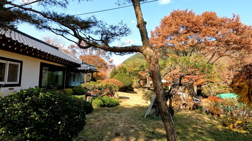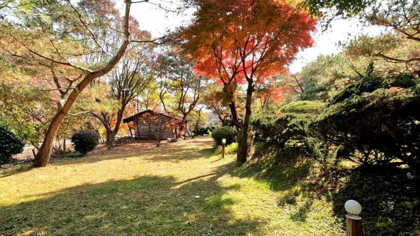 넒은 잔디마당에 주인분 손에 정성스럽게 가꾸어진 수많은 오래된 정원수들.