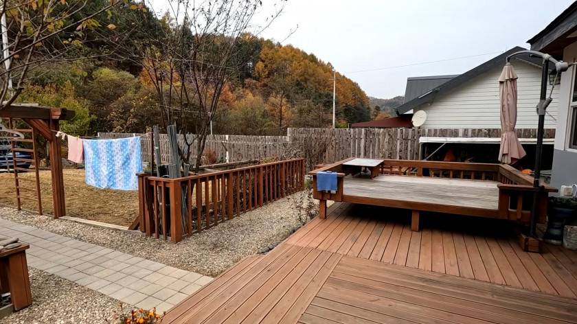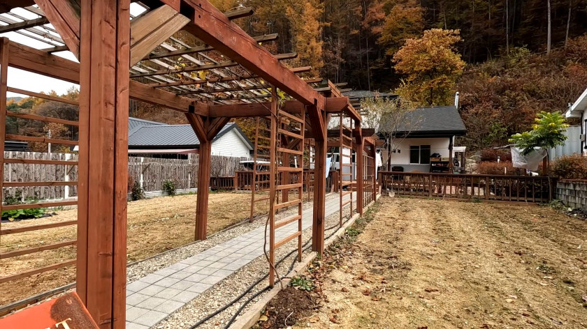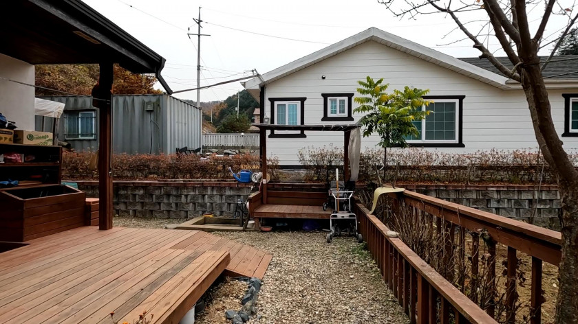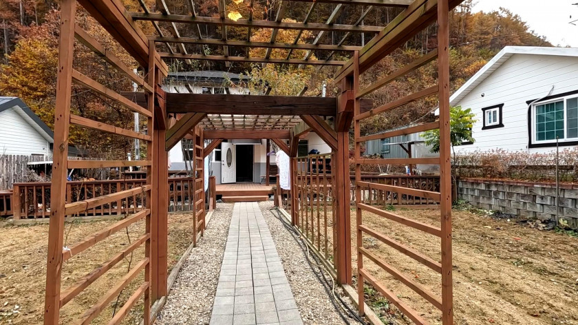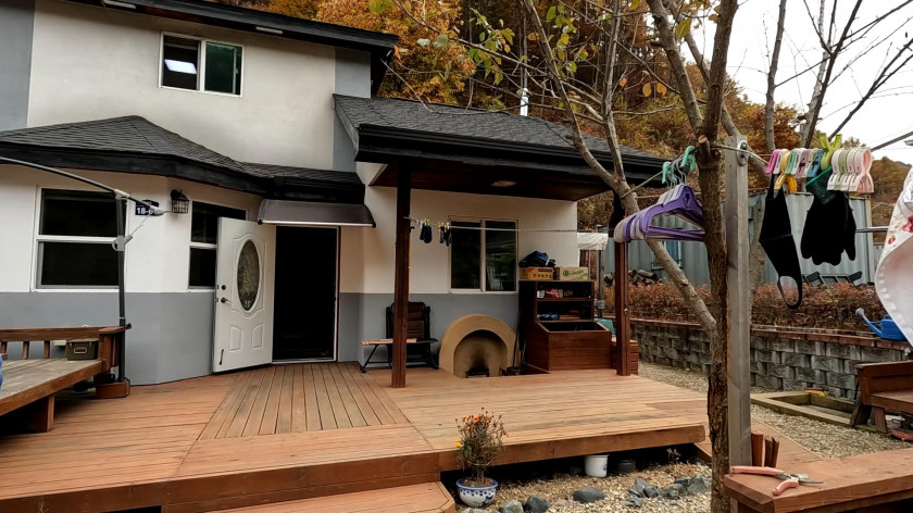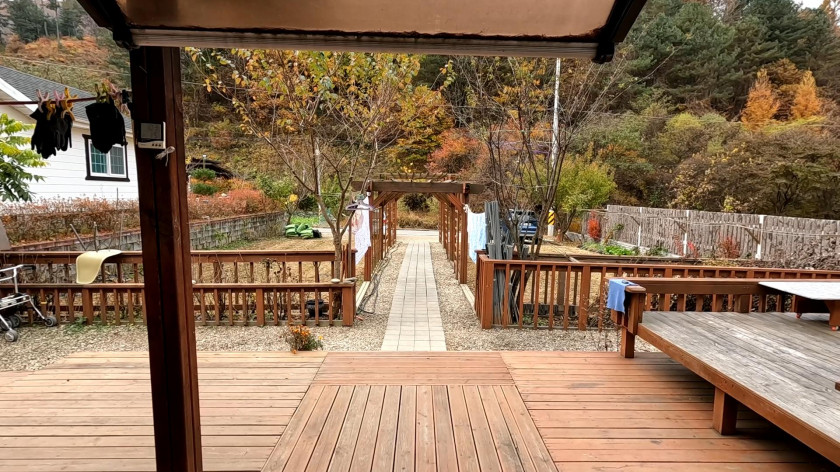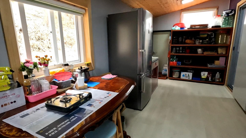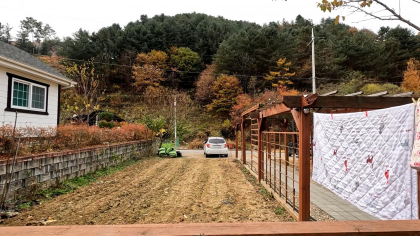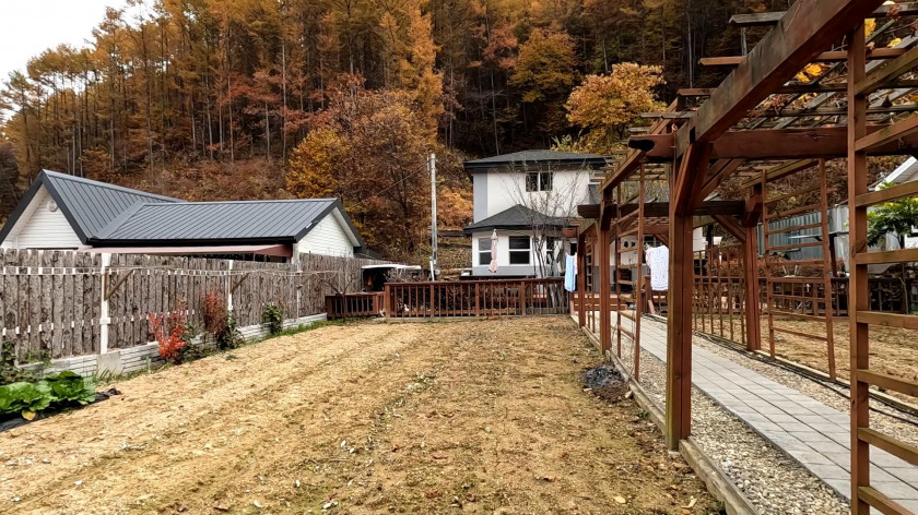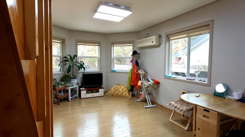 산 아래 주택의 2층 목조주택으로 건축주의 직업이 목수라 단열에 신경 써서 직접 건축하셨다고 합니다.