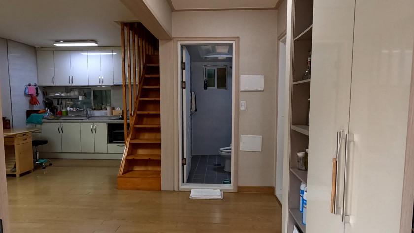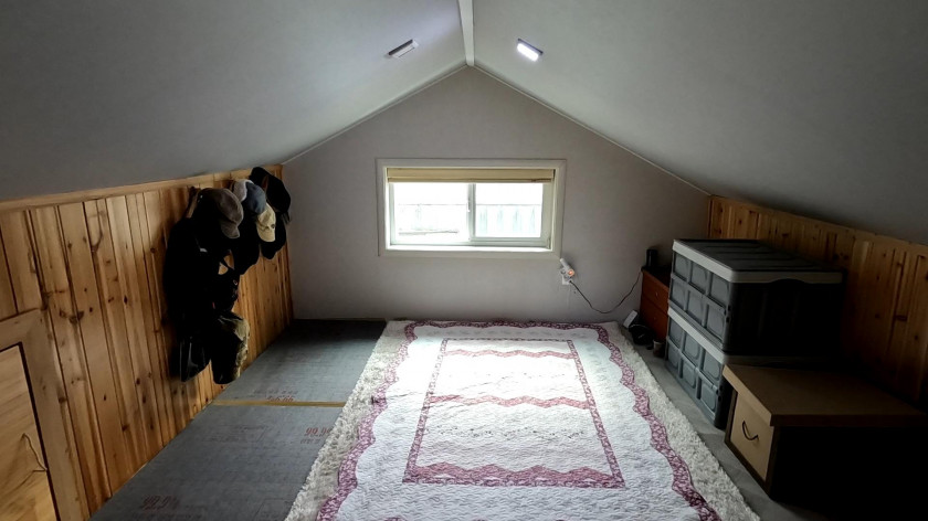 내부 계단을 통해 올라가는 2층은 7평으로 방(전기 필름 난방)이 하나 있고, 등기상 포함되지 않은 3~4평의 다락방 공간이 별도로 있습니다.