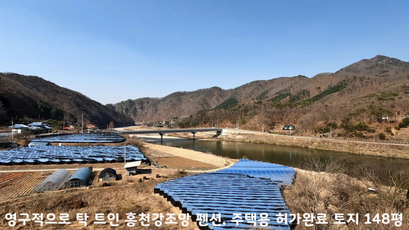 강원도 홍천 북방면 노일리 강 조망의 경치 좋은 건축 허가 완료된 별장 펜션용도 토지 매매