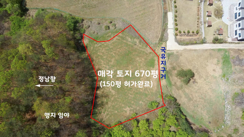 전체 토지 중 150평은 대지전용 비용이 모두 납부된 허가된 토지이므로 건축에는 전혀 문제없으며, 숲을 바로 보며 건축을 할 수 있음