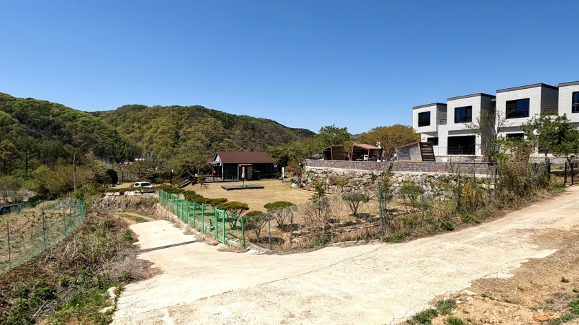 토지 아래쪽으로 전원주택과 독채형 펜션 등이 있음