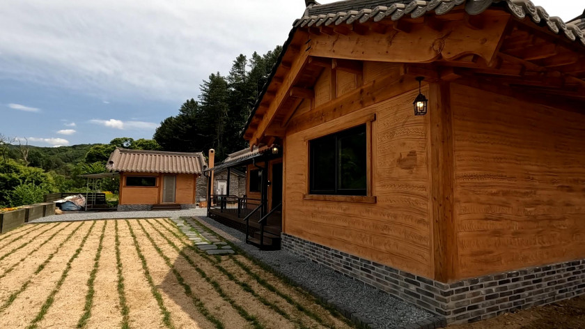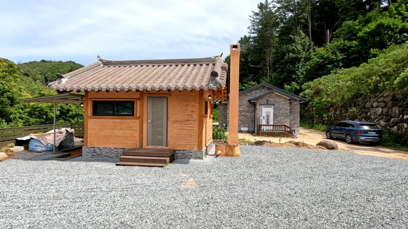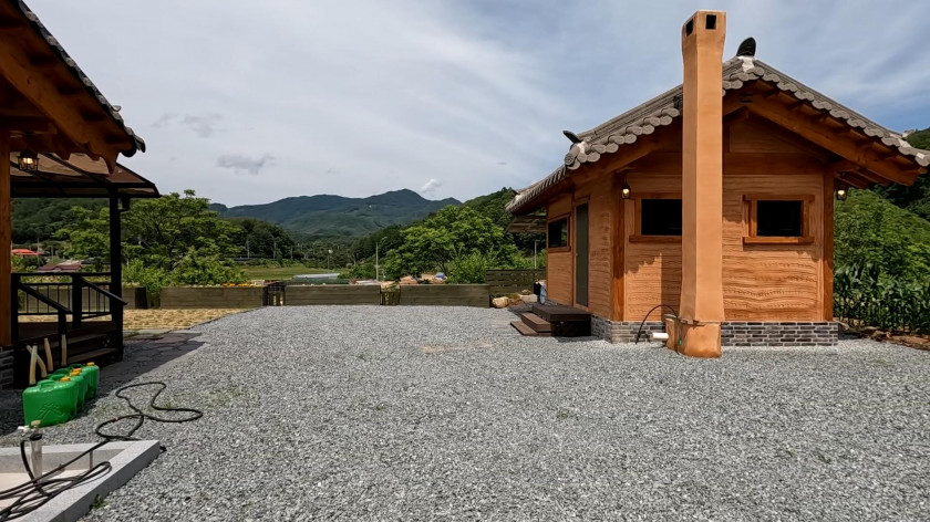 부동은 아궁이 찜질을 할 수 있도록 아궁이를 외부에 설치하고 그 위에 렉산으로 비가 들어오지 않도록 지붕이 설치되어 있으며, 주동과 동일한 한옥주택으로 설치하였습니다.
