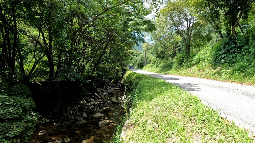 주변으로 10가구 정도가 있으며, 매각 토지 앞의 도로는 막힌 도로로 통행량이 많지 않아 조용하고, 물이 마르지 않는 유해요소가 전혀 없는 맑은 계곡물이 흐르는 공기 좋은 곳입니다.