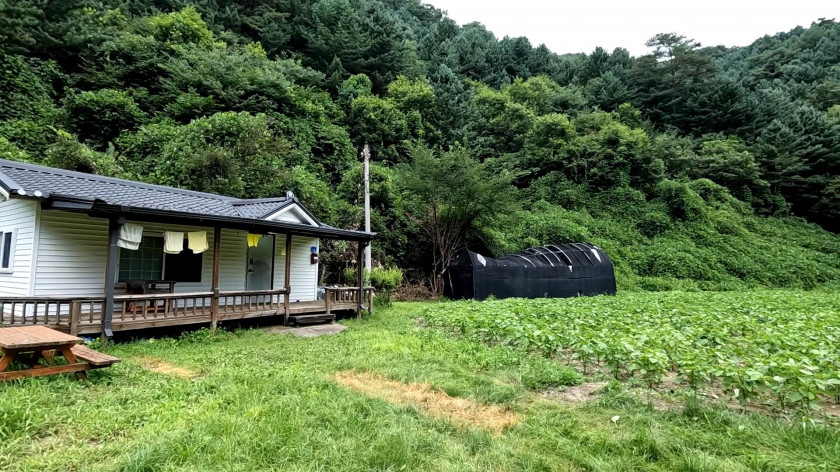 배후 국유림의 계곡 인접한 농막이 포함된 펜션 가능한 홍천 계곡 토지 매매입니다.