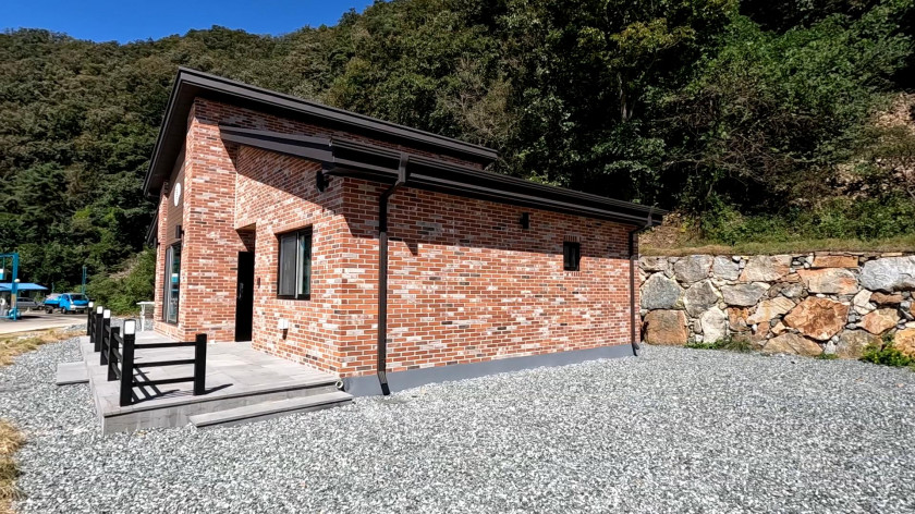 건물 구조 : 내진설계와 불연성 소재를 사용한 단열 좋게 잘 지은 경량철골구조(외부 벽돌 마감, 징크 지붕)