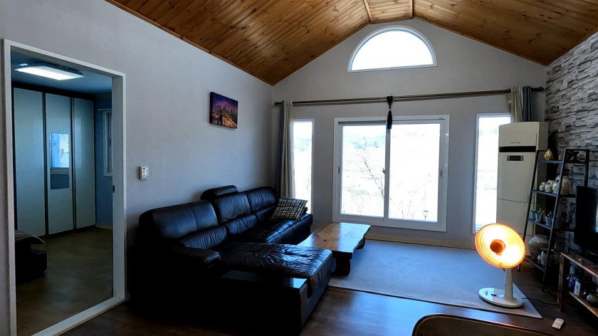 천장이 조금 높게 되어 있고 거실에서 보이는 막힘없이 탁 트인 경치가 좋아서 주택 내부에서 답답한 없이 생활이 가능합니다.