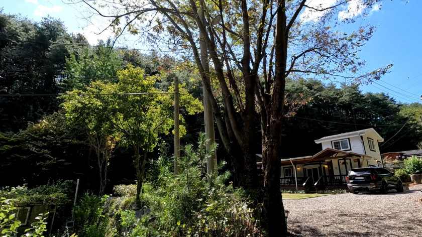 그리고 주택의 양옆으로는 숲으로 둘러싸여 있고 주택 뒤쪽으로는 2가구 이외에는 건물이 없으므로 차량 통행도 거의 없는 곳입니다.
