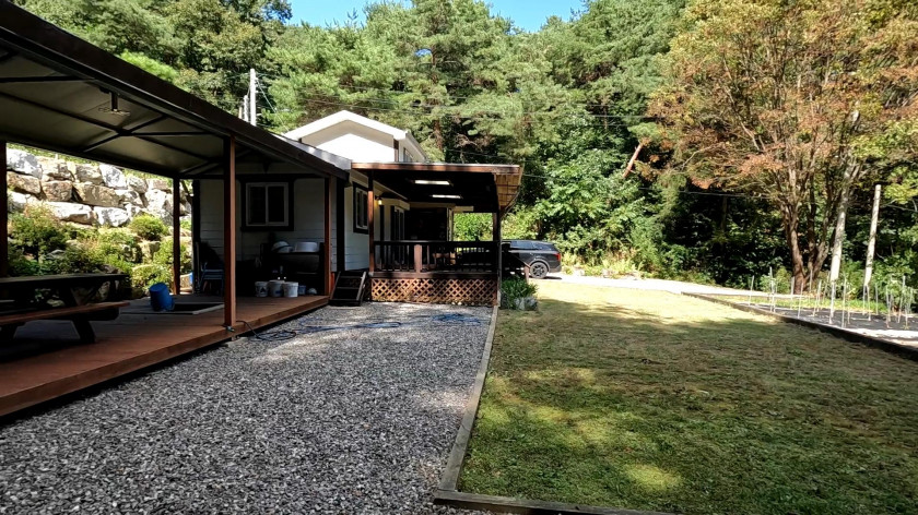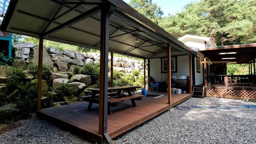 부대 시설 : 주택 옆으로 10평 정도의 넓은 지붕이 있는 야외 공간이 있음