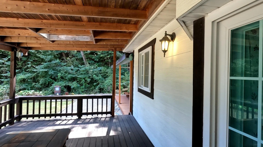 매매 주택의 가장 큰 장점은 비가 오거나 눈이 와도 야외생활이 가능한 넓은 처마가 있는 데크와 주택 옆으로 야외 개수대가 포함된 지붕이 있는 넓은 다용도 공간입니다.