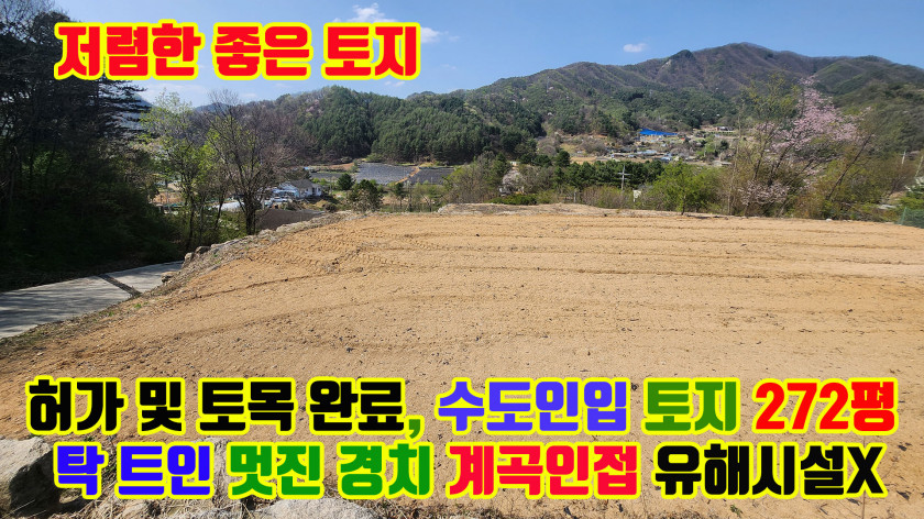 허가 사항 : 임야 255평에 대해 개발행위허가가 완료되었고 대지 변경 비용이 납부됨. 주택 즉시 건축 가능