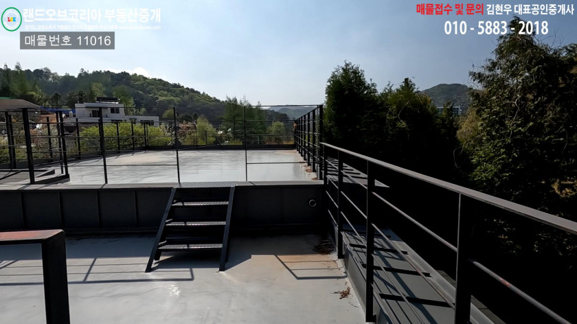 외부 계단을 통해 옥상으로 올라갈 수 있고, 콘크리트로 슬래브 처리가 되어 있어서 추가로 증축하거나 옥상에 구조물을 설치하기가 용이합니다.