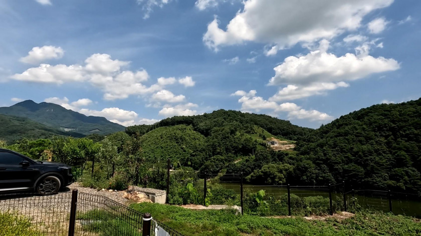 경치가 좋고 홍천강으로 가는 내촌천이 보이는 강 조망 주택