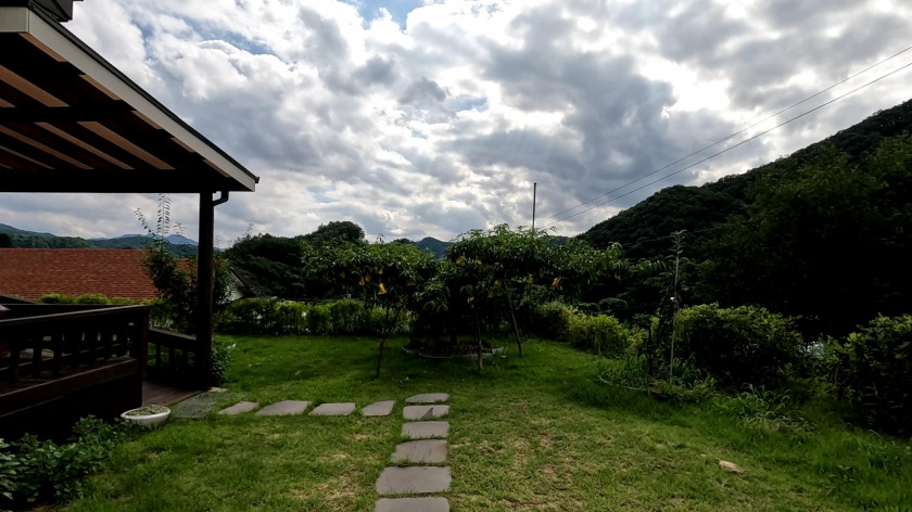 부대 시설 : 넓은 처마가 있는 데크, 주방과 연결된 넓은 다용도 공간(약 10평), 태양광 시설(3kw) 설치됨