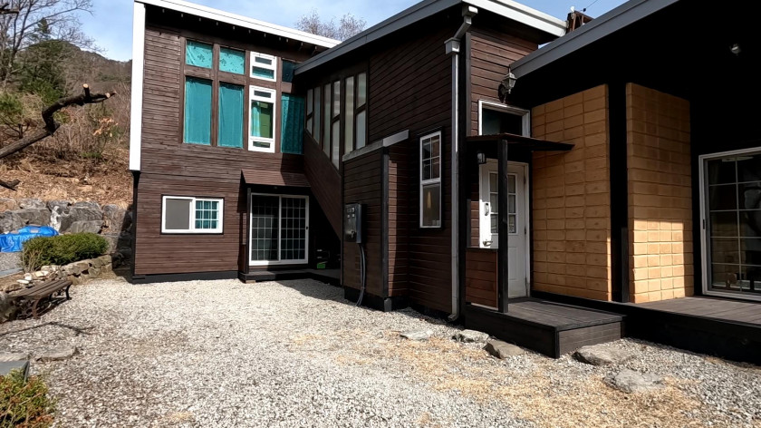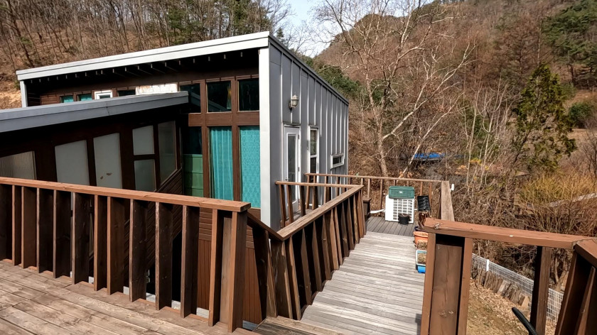 주택은 일반목구조로 외부 마감은 징크 및 방부목으로 되어 있습니다.