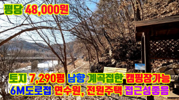 계곡에 접한 6m 이상 도로에 접한 완경사의 임야로 접근성이 좋은 개발하기 좋은 토지입니다.