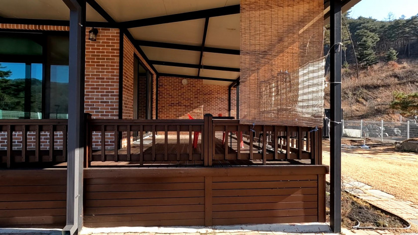 그리고 처마는 단열이 되는 판넬 재질을 사용하여 여름철에도 처마 아래가 뜨겁지 않고, 비가 오거나 눈이 와도 걱정하지 않고 야외 생활을 즐길 수 있음.