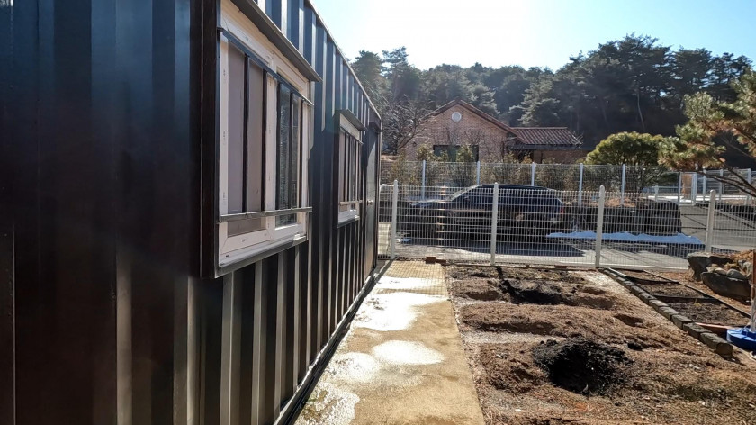 잡초관리를 최소화할 수 있도록 건물 뒤쪽이나 옆쪽에 바닥 콘크리트 시공이 되어 있고, 마을의 마지막에 위치하여 아늑하고 독립적임.