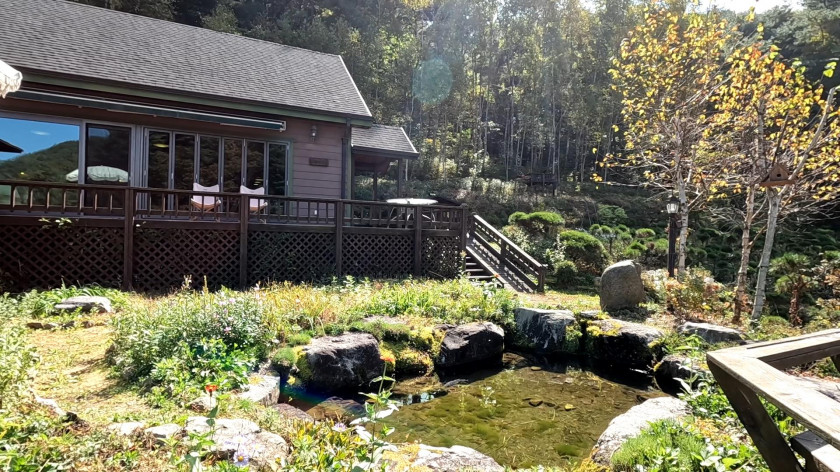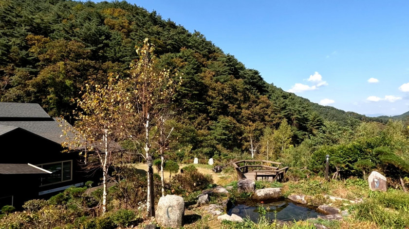 450고지의 맑은 공기와 경치가 막힘없이 트여있고, 맑은 계곡물을 이용한 연못이 매력적이며 조경이 이쁨
