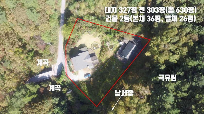 450고지 맑은 공기와 펜션 가능한 계곡 좋고 조경 이쁜 국유지 산으로 둘러싸인 건물 2채와 넓은 토지매매 1. 기본 소개 소재지 : 강원특별자치도 홍천군 서석면 어론리 토지 면적 : 2,082㎡(630평) 토지 지목 : 대지(327평), 전(303평) 토지 용도 : 계획관리지역 진입 도로 : 포장된 국유지 도로를 통해 진입 건물 면적 : 전체 2동으로 본채 118.5㎡(36평) + 별채 85.38㎡(26평) 건물 용도 : 본채- 단독주택(36평), 별채- 근린생활시설(26평, 소매점으로 되어 있으나 실사용은 주거 용도) 건물 구조 : 일반철골구조 및 경량철골구조 준공 일자 : 본채(2009년 5월 7일), 별채(2016년 7월 19일) 난방 급수 : 심야전기보일러, 기름보일러, 벽난로 / 지하수 내부 구조 : 본채(방 2, 화장실 2, 거실 2, 주방 2, 창고) / 별채(큰 거실, 주방, 화장실, 다락방) 부대 시설 : 창고 및 넓은 데크와 연못 매매 금액 : 4억5천만원(금액 조율 불가) 2. 접근성 및 주변 환경 서울 잠실에서 약 1시간 30분 서울 양양 간 고속도로 동홍천 IC에서 약 30분 초, 중, 고등학교와 마트, 은행 등 생활 편의시설이 있는 서석면 소재지 시내까지 약 15분 마을에서 마지막에 위치하여 독립적이고 아늑함 메인 2차선 도로에서 약 3km 안쪽을 잘 포장된 평탄한 도로를 통해 진출입함 주변은 축사와 같은 유해시설이나 묘지와 같은 혐오시설이 전혀 없음 맑고 깨끗한 계곡물이 인접하고 있고, 배후는 낮고 아늑한 국유지 임야에 둘러싸여 있음 450고지의 맑은 공기와 경치가 막힘없이 트여있고, 맑은 계곡물을 이용한 연못이 매력적이며 조경이 이쁨 3. 건물 상세 건물은 전체 2동으로 본채는 2층 건물로 건축물대장상 면적은 36평이나 주방을 8평 확장하여 실사용면적은 44평입니다. 1층은 확장된 주방을 포함하여 31평으로 방 1, 화장실 1, 거실, 주방, 창고로 되어 있고, 내부계단과 외부 계단 둘 다 출입이 가능한 2층은 13평으로 방 1, 화장실 1, 거실, 미니 주방이 설치되어 있습니다. 1층과 2층 둘 다 데크가 넓게 설치되어 있고, 1층의 경우 데크위에 지붕이 있어서 다양한 야외활동이 가능합니다. 별채는 좋은 자재와 단열 좋은 창호(이건창호)를 사용하여 추가로 건축한 건물로 근린시설로 허가를 받았습니다. 내부는 1층은 21평으로 넓은 거실과 주방, 화장실 1개로 되어 있고, 한쪽 면을 통창과 폴딩도어를 설치하여 여름철에는 외부의 넓은 데크공간과 연결하여 파티를 즐기기 좋고, 거실에는 벽난로와 빔프로젝터가 설치되어 있습니다. 내부 계단을 통해 올라가는 다락방은 5평으로 다락방에 누어서 1층의 빔프로젝터를 통해 즐기는 영화관람이 매력적인 곳입니다. 별채의 경우 필요에 따라 펜션과 같은 숙박시설로 운영한다면 인기가 매우 좋을 것입니다. 별채와 연결되어 넓은 창고가 설치되어 있어서 다양한 용도로 활용하기 좋을 것입니다. 배후는 자작나무가 있는 나즈막한 국유지 임야에 둘러싸여 아늑하며, 다른 사람의 간섭을 받지 않는 독립적인 위치입니다. (독립적인 위치이면서도 너무 외지지는 않은 곳입니다.) 가까이에 맑고 유량이 좋은 계곡이 흘러서 여름철에 물놀이를 즐기기도 좋을 것입니다. 계곡물을 이용하여 만든 연못은 필요하다면 작은 풀장으로 이용하기도 좋을 것 같습니다. 4. 참고 사항 자연환경 좋고 450고지의 청정하고 맑은 공기와 국유림의 피톤치드를 즐길 수 있는 힐링과 휴식의 매물입니다. 건물 2채가 있어서 펜션을 바로 운영하여 수익을 창출하기도 좋고, 2~3가족이 함께 지내기도 좋습니다. 특히 별채의 경우 한 번쯤은 지내보고 싶은 구조의 건물로 다양한 용도로 활용하기 좋을 것입니다. 계곡 인접하고 경치 좋은 배후 국유림의 진출입 도로가 잘 되어 있는 최적의 자연조건을 갖춘 홍천 매물입니다. 다음은 동영상 설명입니다. https://youtu.be/dglddKeo4M8 |