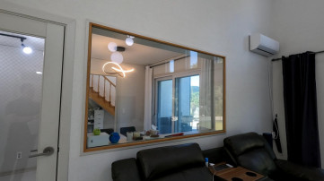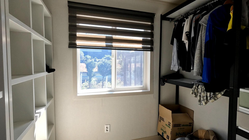 내부는 전체 방 3(방 1개는 옷방으로 사용), 화장실 2, 드레스룸, 거실, 주방, 다용도실, 복층형 다락방으로 구성되어 있고, 이중창과 삼중창을 사용하여 단열에 신경 쓰면서 채광을 매우 좋게 하였습니다.